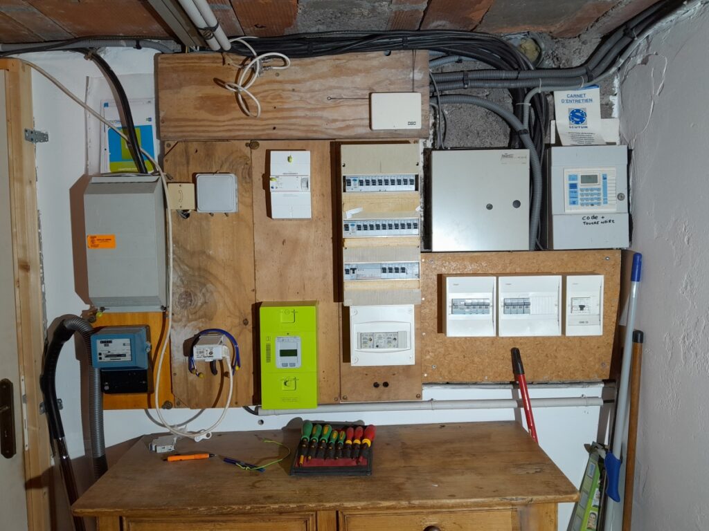 Le tableau de droite dates des années 90, il a été monté avec tout le dépit du bon sens possible, par quelqu’un qui n’était pas du tout électricien.
